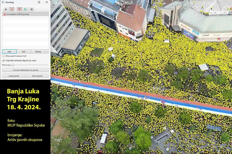 “Procjena koju je objavio MUP veća je od toga oko pet i po puta, što znači da nadležni predstavnici ove institucije pri dolaženju do te brojke nisu koristili čak ni svoje vlastite fotografije. Poznato je da organizatori javnih okupljanja imaju težnju da u većoj ili manjoj mjeri preuveličaju broj okupljenih na svom događaju, ali od javne institucije, plaćene novcem poreskih obveznika, koja pritom nije organizator skupa, očekivalo bi se da daje profesionalne procjene, a ne da se bavi neobuzdanim pretjerivanjem. Povećati stvaran broj učesnika pet i po puta je ne samo nemoralno, već i krajnje djetinjasto, a na temelju snimka iz drona koji je sam MUP objavio svako može doći do tačne procjene poslije ne više od tri sata brojanja”, navode iz Arhiva javnih skupova.